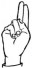 На ћирилици написано АНДРЕЈ ДАНГУБИЋ састоји се из 14 слова [?]. Исписано ћириличном једноручном азбуком за глувонеме: